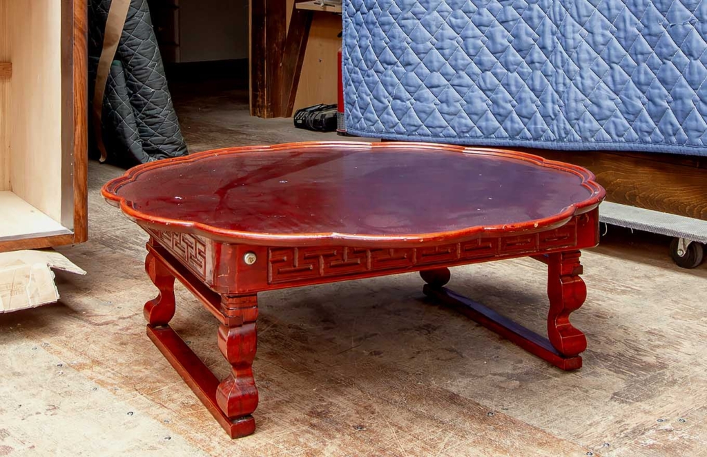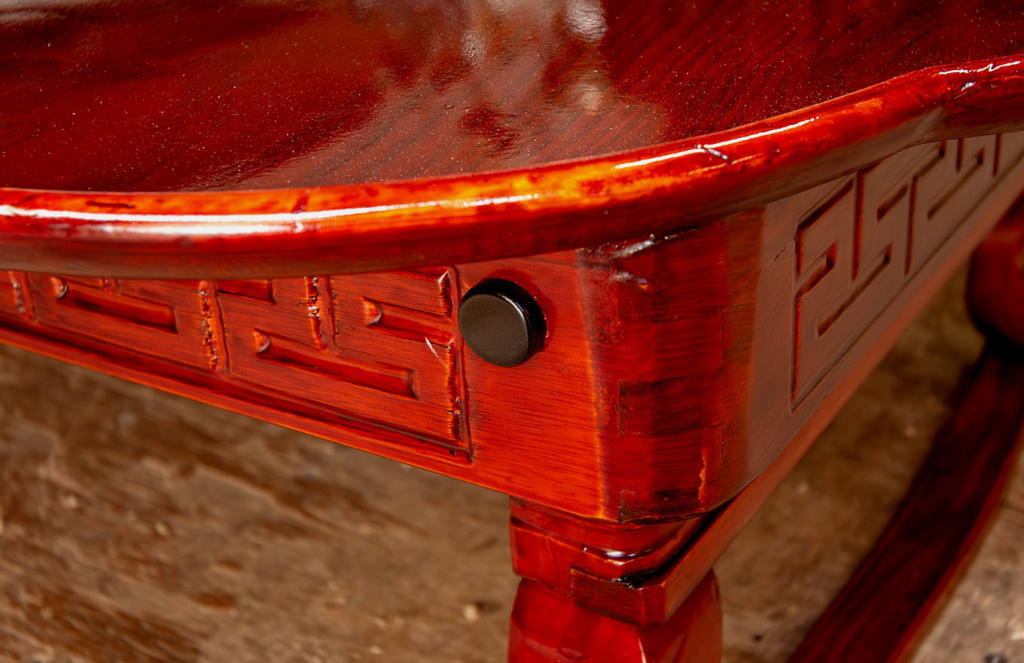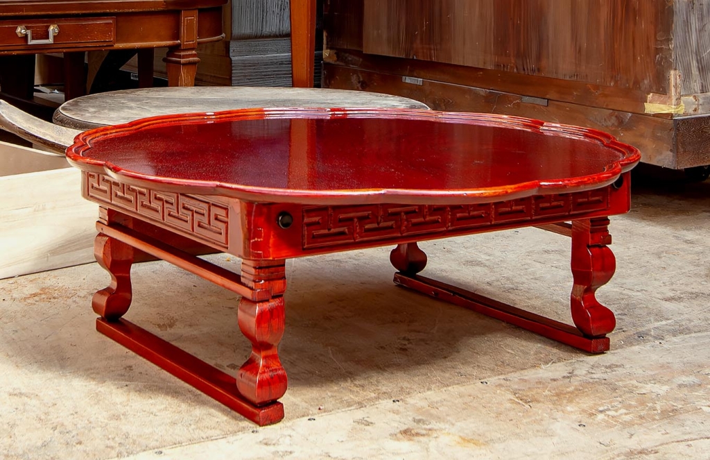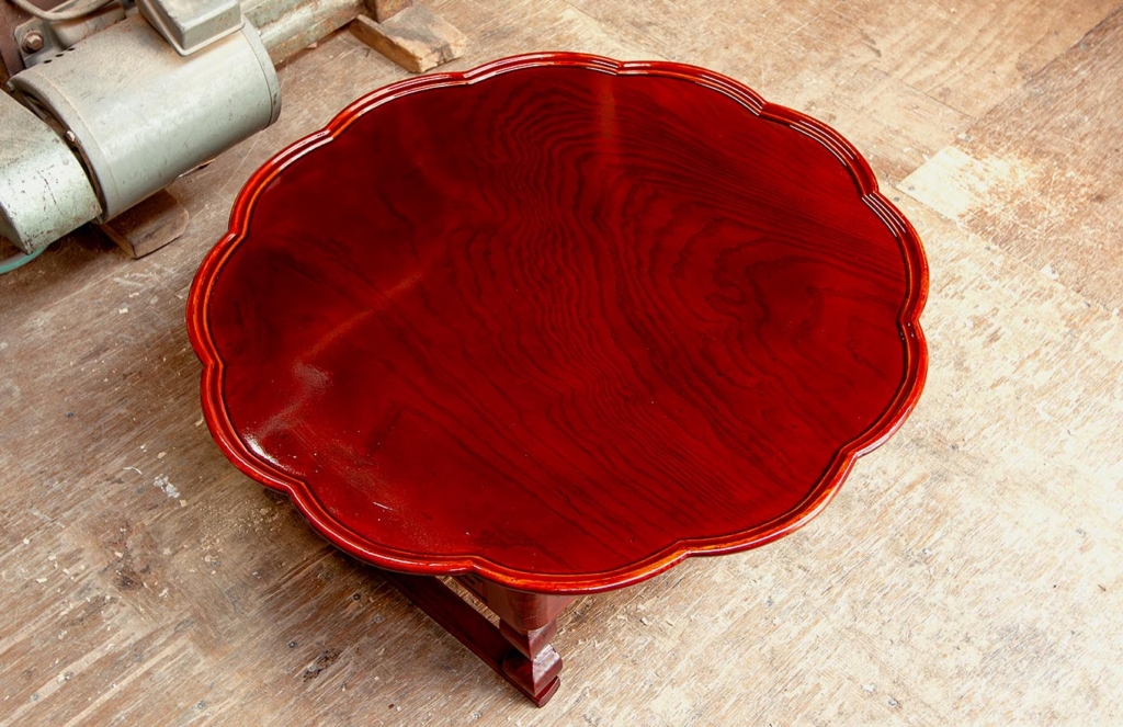花型の様な可愛らしい天板と、天板下の雷文が印象的ですね。お子さま達もお気に入りで、大きくなってからもよくお使いになっていたそうです。