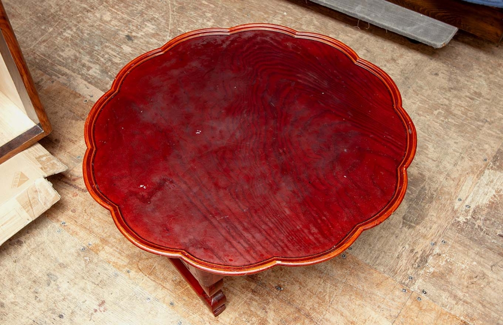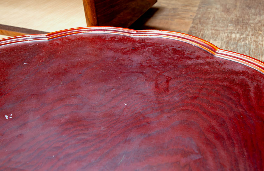 円卓全体を修理し、美しく蘇った想い出の円卓。塗装直しをする事で天板の曇りも無くなり、艶やかな佇まいに。